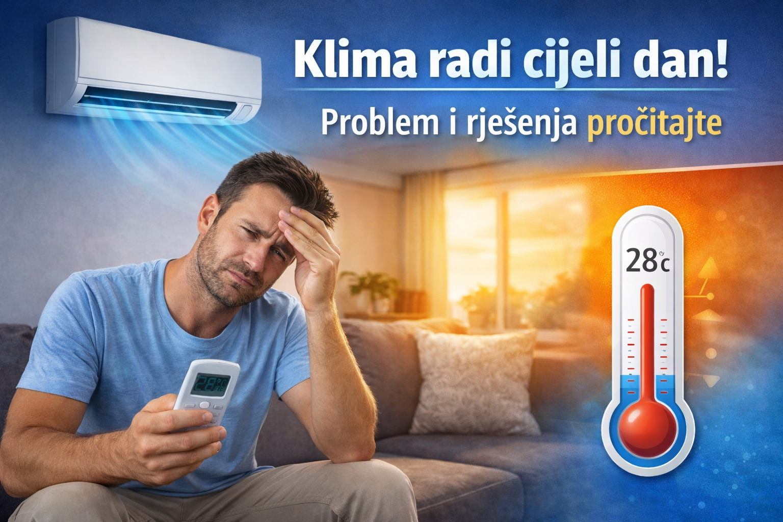 Toplina stalno ulazi u prostor, klima radi bez prestanka.