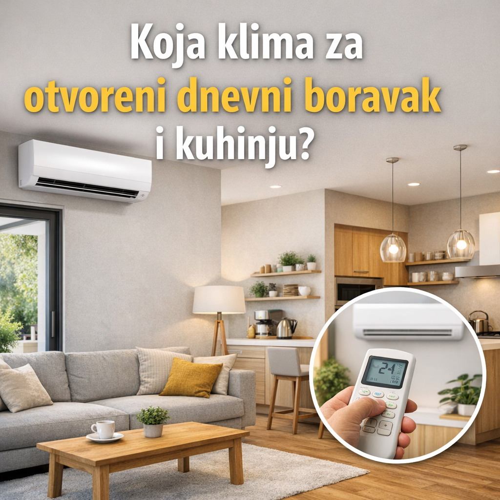Otvoreni dnevni boravak i kuhinja izgledaju prostrano, moderno i vrlo ugodno za boravak, ali upravo zato postaju i zahtjevniji za klimatizaciju. Klima uređaj u takvom prostoru ne „vidi" samo jednu jednostavnu prostoriju, nego često mora pokrivati više funkcionalnih zona odjednom: dnevni boravak, kuhinju, blagovaonicu, ponekad i hodnik ili otvoreni prolaz prema drugim dijelovima stana.