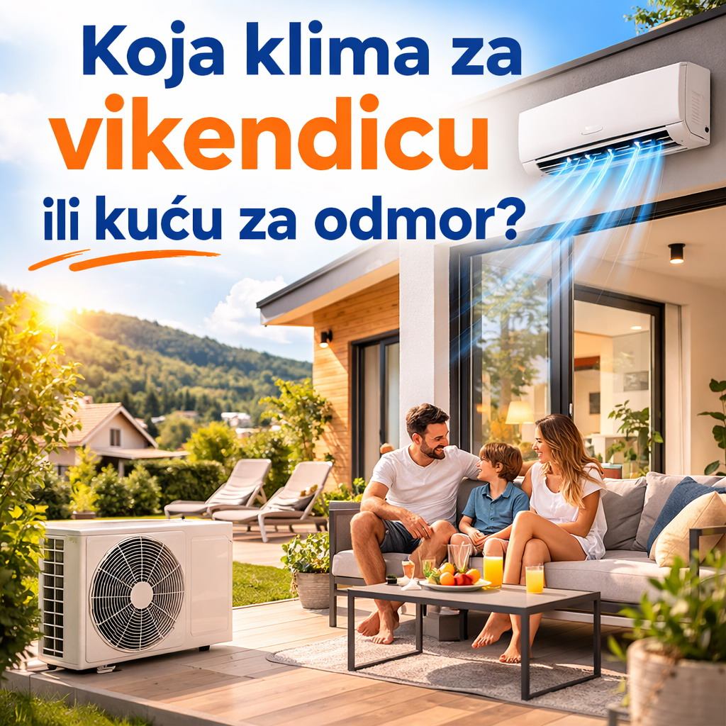 | Mala vikendica ili apartman s jednom glavnom zonom | Jedna kvalitetna inverter mono split klima | Snaga prema stvarnim uvjetima, tihi rad, Wi-Fi, brz učinak po dolasku |